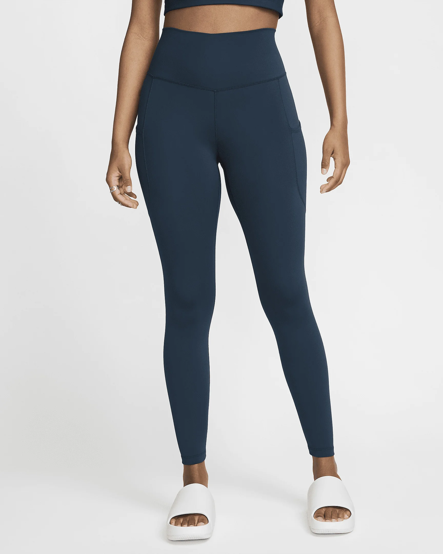 Up for a workout or down to chill, these leggings are the Ones that are ready for whatever you are. Their midweight, peachy-soft fabric stretches with your every move and dries quickly. Plus, a high waist is designed to meet your favorite cropped tops for a head-to-toe look that you can feel confident and comfortable in all day long. Product Details - Body: 80% polyester/20% spandex. Gusset lining: 100% polyester. - Machine wash - Imported - Not intended for use as Personal Protective Equipment (PPE) - Shown: Armory Navy/Black - Style: FN3241-478 SIZE & FIT Model is wearing size S and is 5′10″177cm Tight fit: snug and form-fitting Gentle support: feels ke a soft hug with plenty of freedom 78 length: hits at ankle High-Waisted: sits at or above your natural waist for more coverage