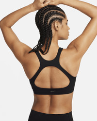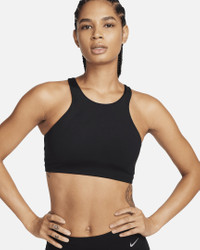 Up for a workout or down to chill, this high-neck bra is ready for whatever your day has in store. Its midweight, peachy-soft fabric stretches with your every move and dries quickly, while medium support gives you a snug hold that helps keep everything in place. Plus, the lightweight, sewn-in spacer lining feels breathable while still giving you plenty of coverage. Benefits - Nike Dri-FIT technology moves sweat away from your skin for quicker evaporation, helping you stay dry and comfortable. - Keyhole back design invites plenty of airflow. - Fabric-covered bottom band helps reduce pinching and binding. Product Details - Body: 80% polyester/20% spandex. Front lining: 88% polyester/12% spandex. Panels lining: 80% polyester/20% spandex. - Machine wash - Imported - Shown: Black - Style: FN2698-010 SIZE & FIT Model is wearing size S Model height: 5′10″178cm Model bust: 32″81cm Tight fit: snug and form-fitting Medium support: feels ke a snug hold to keep everything in place