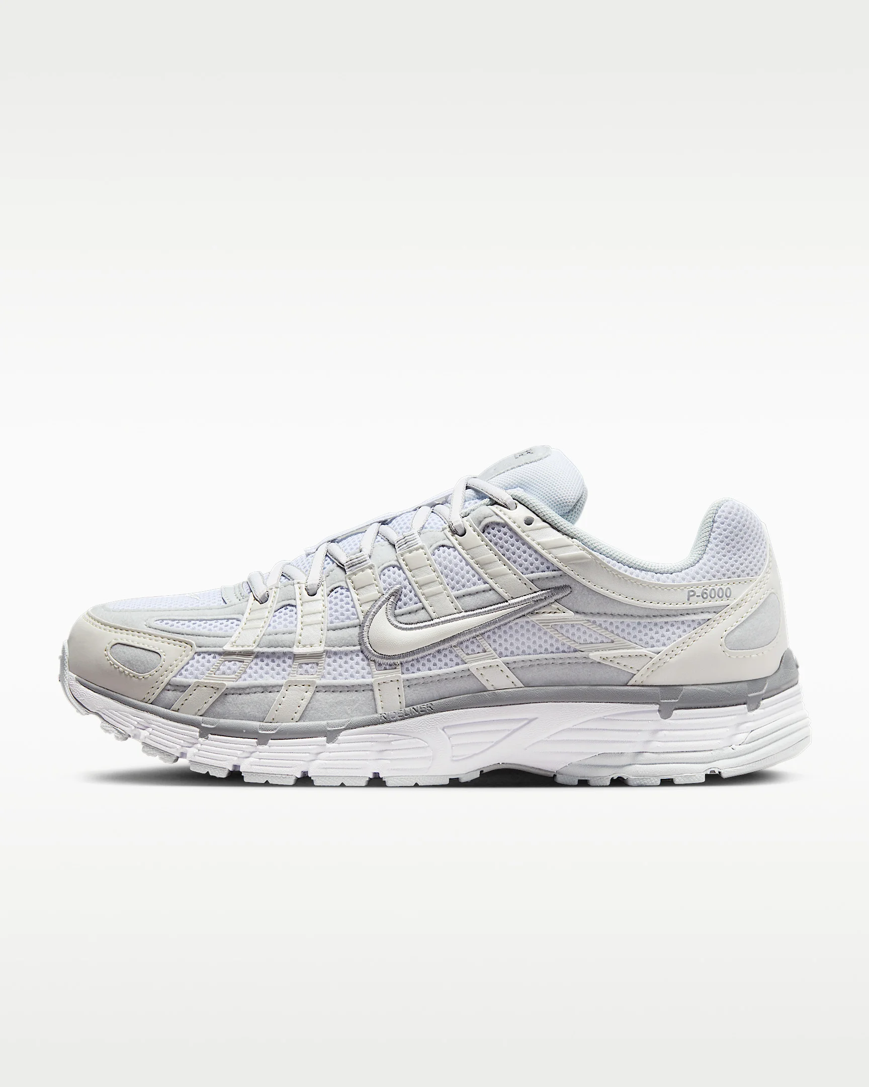 A mash-up of past Pegasus sneakers, the P-6000 takes early 2000s running to modern heights. Featuring airy mesh and sporty lines, it's the perfect mix of head-turning looks and breathable comfort. Plus, its foam cushioning adds a lifted, track-inspired stance and unbelievable cushioning. Benefits - Textile and synthetic overlays add structure and comfortable support. - Throwback design draws on Nike Pegasus 25 and Nike Pegasus 2006. - Cushioned insole delivers comfortable underfoot feel. - Rubber outsole adds durable traction. Product Details - Reflective details - Not intended for use as Personal Protective Equipment (PPE) - Shown: Metallic Summit White/Pure Platinum/Wolf Grey/White - Style: FV6603-101