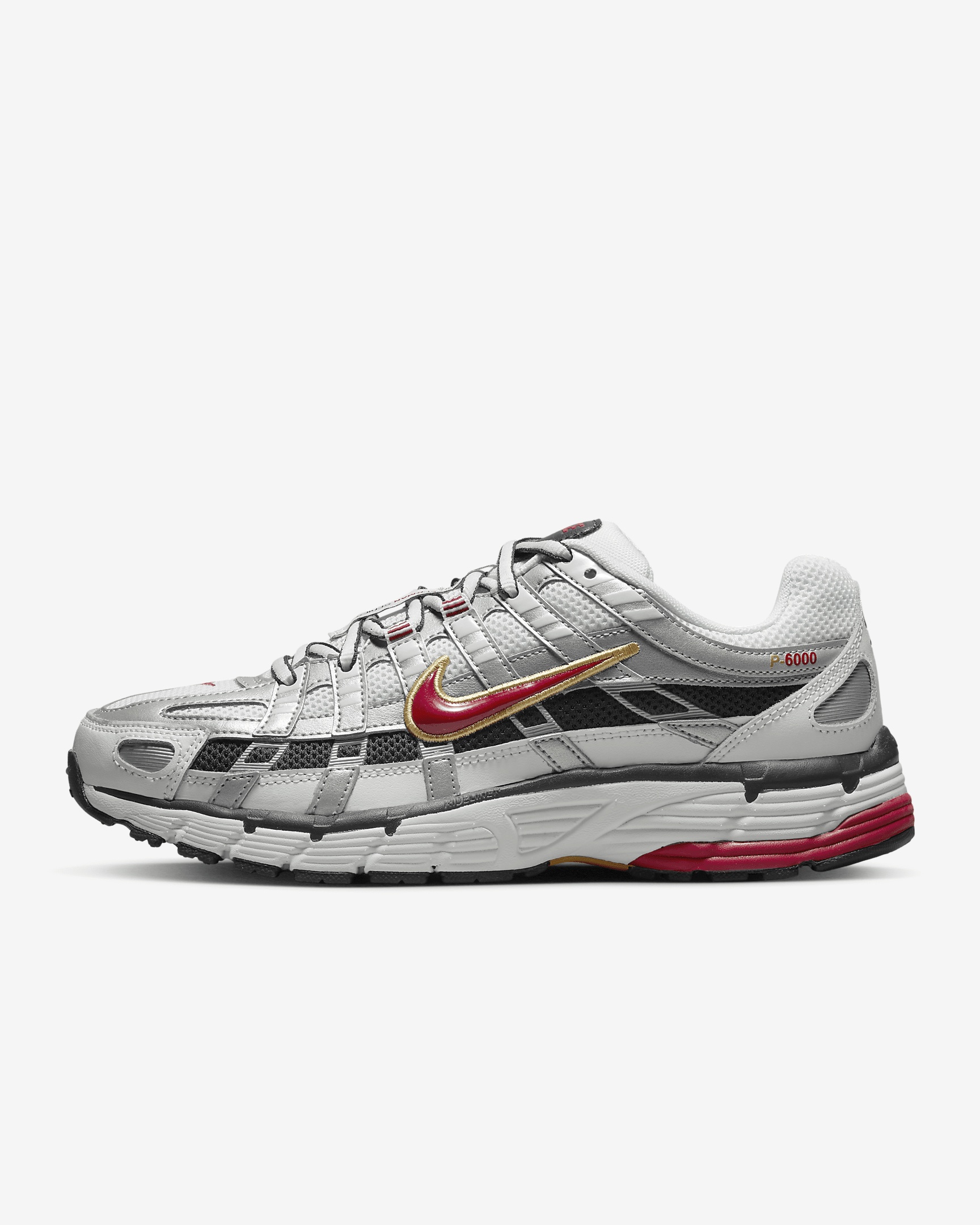 A mash-up of Pegasus' past, the Nike P-6000 features breathable mesh with horizontal and vertical overlays for a 2000s running look that is as striking as, say, a majestic winged horse. Drawing on the design of the Nike Pegasus 25 and 2006, its running aesthetic meets all-day comfort for the streets. Benefits - Leather, textile and synthetic upper gives comfortable support. - Design draws on the Nike Pegasus 25 and Nike Pegasus 2006. - Foam midsole provides lightweight cushioning. - Cushioned sockliner delivers a comfortable underfoot feel. - Rubber outsole gives durable traction. Product Details - Shown: White/Metallic Platinum/Dark Charcoal/Varsity Red - Style: BV1021-101