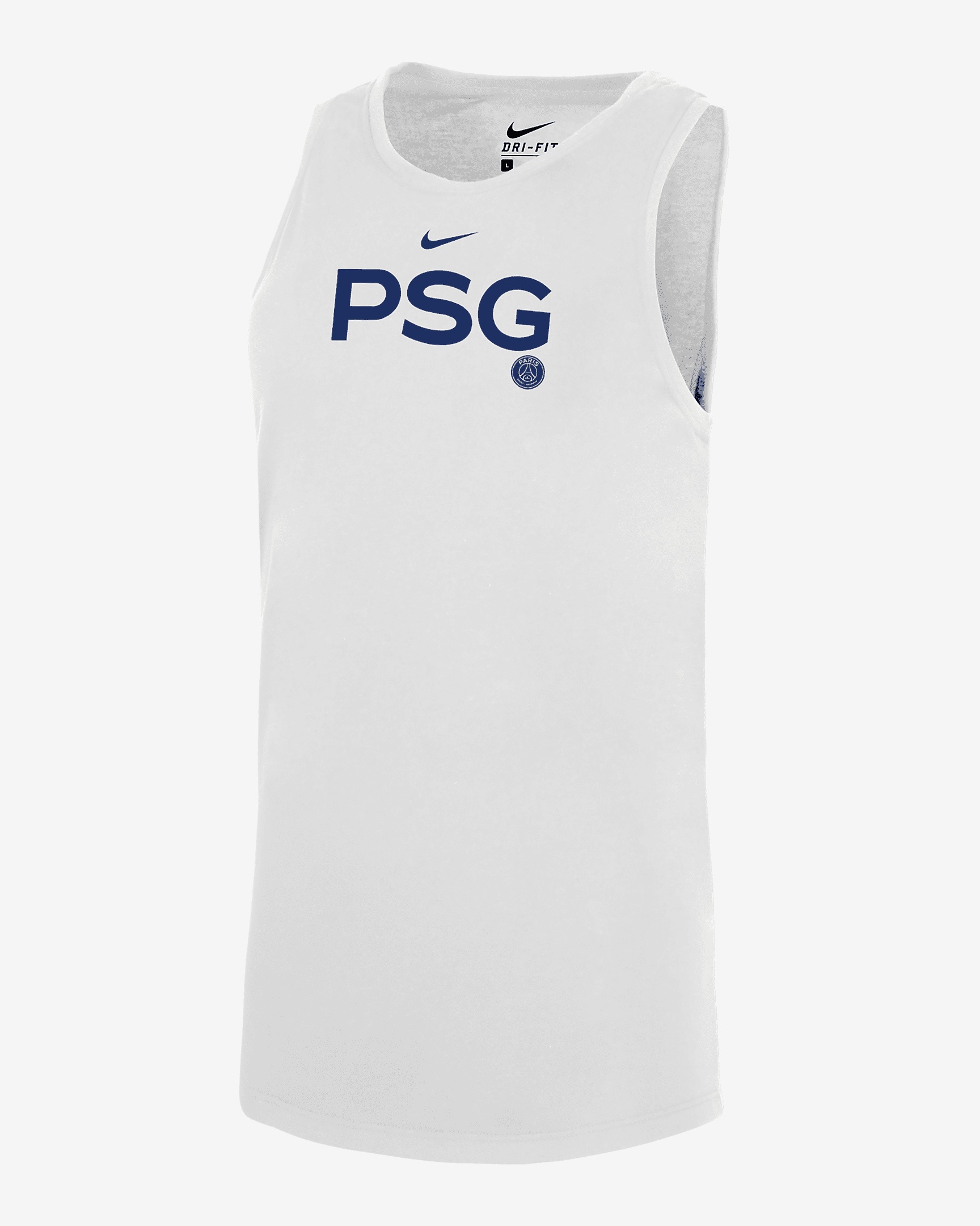 Sleeves? Who needs 'em? Keep cool in this Paris Saint-Germain tank top. Made with a lightweight cotton-blend fabric and sweat-wicking technology, it helps you stay dry and comfortable all the way from morning errands to evening soccer games. Benefits - Nike Dri-FIT technology moves sweat away from your skin for quicker evaporation, helping you stay dry and comfortable. - Cotton-polyester blend is soft and comfortable. Product Details - 57% cotton/43% polyester - Machine wash - Imported - Shown: White - Style: W529606226-PSG