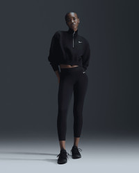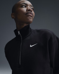 Grounded in style, comfort and versatility, meet our take on luxury loungewear. This 1/2-zip sweatshirt is cropped for a trend-right look, while taller ribbing at the hem, cuffs and collar adds structure to the overall fit. Made from midweight fleece, it's sure to be one of your new cold-weather favorites. Benefits - Our midweight brushed fleece feels extra soft on the inside and smooth on the outside, helping you stay cozy while keeping its structured shape. - Dropped shoulder seams and roomy sleeves provide a casual, relaxed look. Product Details - 1/2-length zipper - Elongated ribbing - Embroidered Swoosh logo - Body: 80% cotton/20% polyester. Rib: 97% cotton/3% spandex. - Machine wash - Imported - Shown: Black/Sail - Style: DQ5767-010 SIZE & FIT Model is wearing size S and is 5′11″180cm Oversized fit: exaggerated and spacious