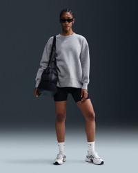 This cozy fleece sweatshirt feels extra soft on the inside and smooth on the outside. Dropped shoulders and extra-wide ribbing enhance the oversized look. Product Details - Body: 80% cotton/20% polyester. Rib: 97% cotton/3% spandex. - Embroidered Swoosh logo at center chest - Machine wash - Imported - Shown: Dark Grey Heather/Sail - Style: FZ4270-063 SIZE & FIT Model is wearing size S and is 5′8″173cm Oversized fit: exaggerated and spacious