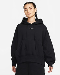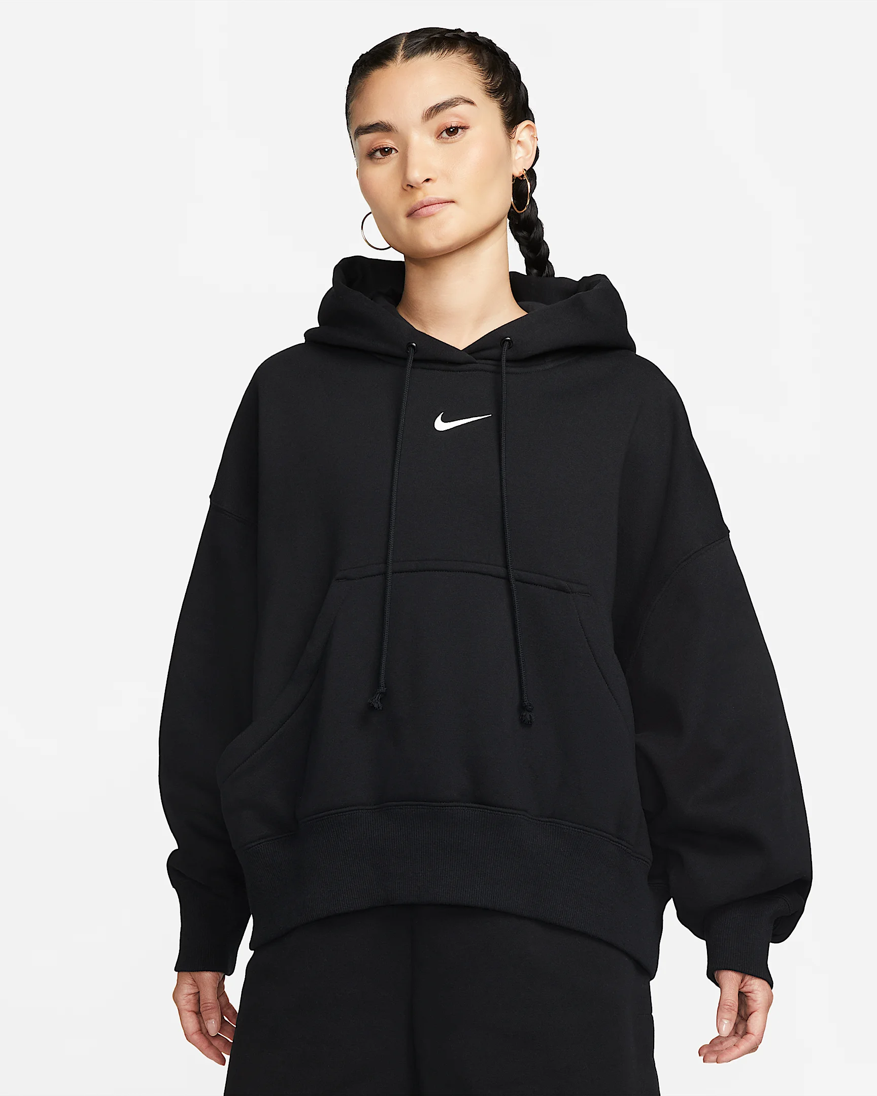 Grounded in style, comfort and versatility, meet our take on luxury loungewear. Our roomiest fit paired with exaggerated details (like the oversized pocket and taller ribbing) ensures this hoodie is anything but basic. All that's left to decide is whether to style it with the matching sweats or other pieces from your wardrobe. Benefits - Our midweight brushed fleece feels extra soft on the inside and smooth on the outside, helping you stay cozy while keeping its structured shape. - Dropped shoulder seams and roomy sleeves provide a relaxed, spacious feel. Product Details - Elongated ribbing - Drawcord hood - Front pocket - Body: 80% Cotton/20% Polyester. Hood lining: 100% Cotton. - Machine wash - Imported - Shown: Black/Sail - Style: DQ5858-010 SIZE & FIT Model is wearing size S and is 5′10″178cm Oversized fit: exaggerated and spacious Fits large; we recommend ordering a size down