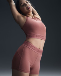 Don't be afraid to turn up the heat on your workout—these shorts are made with moisture-wicking tech and open-hole mesh panels to help keep things breezy. Smooth, stretchy fabric helps you stay comfortable through every squat and lunge. Benefits - Nike Dri-FIT technology moves sweat away from your skin for quicker evaporation, helping you stay dry and comfortable. - Mesh elastic waistband sits snugly against your skin without pinching or binding. Product Details - Body: 78% polyester/22% spandex. Panels: 81% polyester/19% spandex. Waistband: 92% nylon/8% spandex. - Machine wash - Imported - Shown: Canyon Pink/White - Style: FN3336-634 SIZE & FIT Tight fit: snug and form-fitting Medium support: feels ke a snug hold to keep everything in place Mid-Rise: sits just below your natural waist (smallest part of your torso)