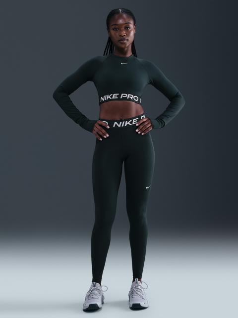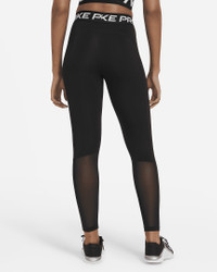 The Nike Pro Leggings are made with sweat-wicking fabric and mesh across the calves to keep you cool and dry. Soft, stretchy fabric moves with you as you sprint, lunge and stretch. This product is made with at least 50% recycled polyester fibers. Benefits - Nike Dri-FIT technology helps you stay dry, comfortable and focused. - A wide, smooth mid-rise waistband feels supportive around your core. - Ventilated mesh panels along the back of the lower legs create airflow for breathability. Product Details - Tight fit for a body-hugging feel - Mid rise - Body: 83% polyester/17% spandex. Mesh: 81% polyester/19% spandex. - Machine wash - Imported - Shown: Black/White - Style: CZ9779-010 SIZE & FIT Tight fit: snug and form-fitting Medium support: feels ke a snug hold to keep everything in place Fl length: hits below ankle Mid-Rise: sits just below your natural waist (smallest part of your torso)