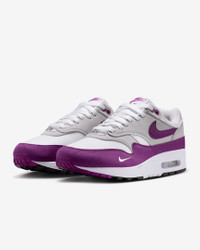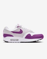The first shoe to use Max Air technology is still displaying the decades of innovation that make it as classic as it is comfortable. The proof? You're looking through it. Textile materials take this Air Max 1 to the next chapter. Benefits - Textile upper creates a layered look built to last. - Max Air unit in the heel provides lightweight cushioning. - Rubber Waffle outsole gives you durable traction and heritage style. Product Details - Padded collar - Foam midsole - Shown: White/Neutral Grey/Black/Bold Berry - Style: HF1194-101