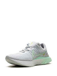 React Infinity Run PK 3 "Foam Mint" sneakers Nike focuses on performance with these React Infinity 3 sneakers. Boasting a lightweight Flyknit upper, the sleek low-top pair â presented in light grey and aqua green hues - is finished with React technology underfoot for cushioned support. Highlights - Light grey - Flyknit construction - Signature swoosh logo detail - Round toe - Front lace-up fastening - Signature react midsole - Contrasting rubber sole - These styles are supplied by a premium sneaker marketplace. stocking only the most sought-after footwear, they source and curate some of the most hard to find sneakers from around the world. Imported Composition Lining: Fabric 100% Sole: Rubber 100% Outer: Fabric 100%