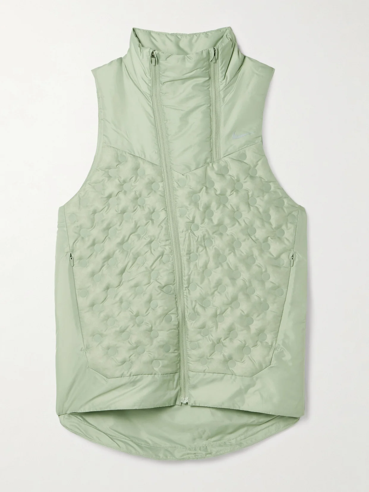Nike's 'Repel AeroLoft' vest is made from the brand's heat-regulating Therma-FIT ADV fabric to keep you comfortable during cold-weather workouts. It features quilted padding along the front to trap heat where it's needed, while a zippered vent enhances airflow. Stow your phone and keys in the secure pockets.