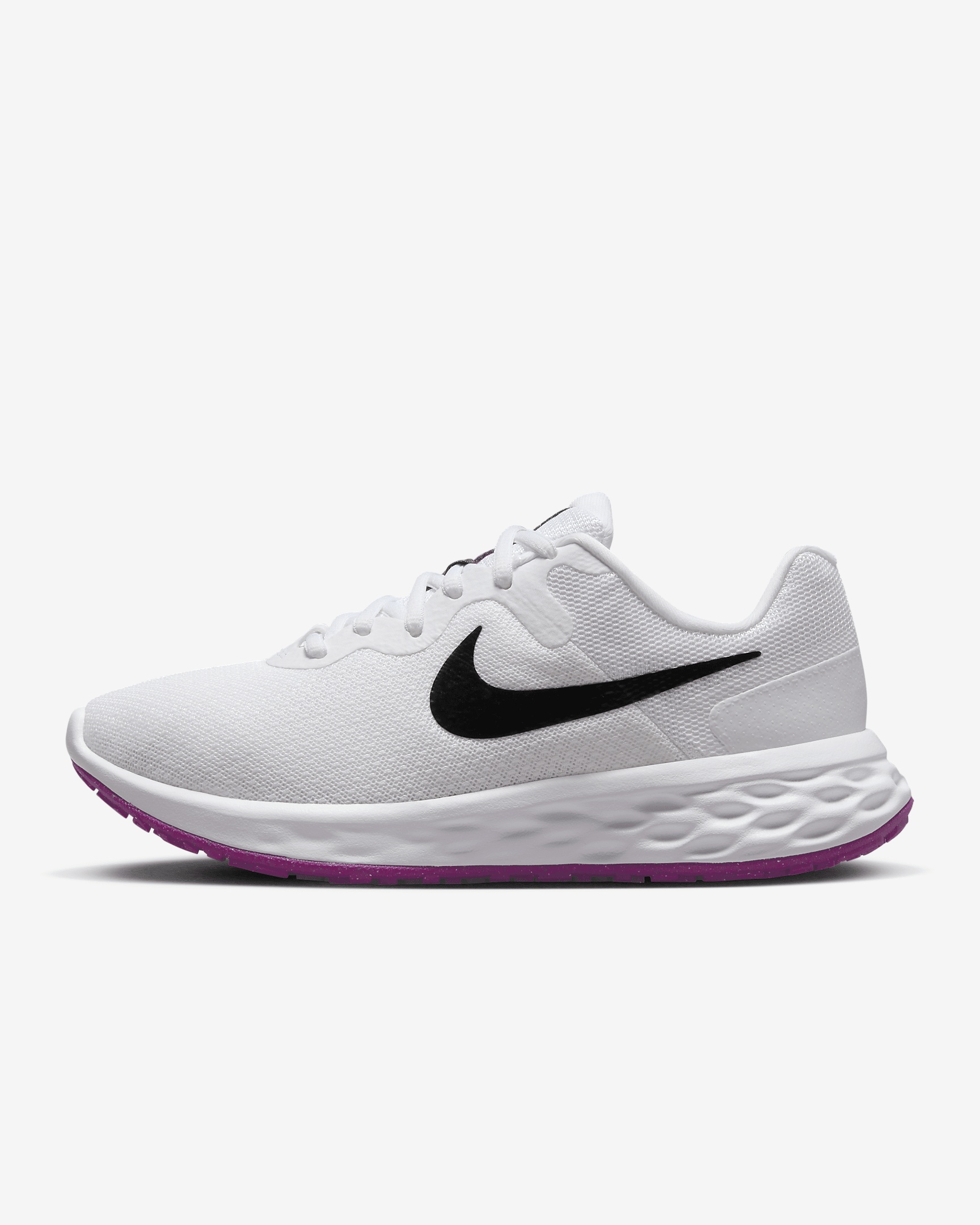 Made with at least 20% recycled material by weight, old materials find new beginnings. Now you can find yours. Set the pace at the start of your running journey with the plush feel of the Nike Revolution 6. We know comfort is key to a successful run, so we made sure your steps are cushioned and flexible for a soft ride. It's an evolution of a favorite, with a breathable design. SIZE & FIT Fits small; we recommend ordering a half size up