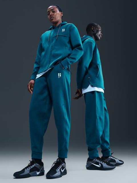 Sabrina Ionescu's versatile, all-gender collection helps keep you confident in your pursuit of excellence. Irresistibly smooth and sleek, these pants made with premium fabric that feels soft and airy, with the perfect amount of stretch for all your moves. Benefits - Nike Dri-FIT technology moves sweat away from your skin for quicker evaporation, helping you stay dry and comfortable. - Zippered pocket secures your essentials. - "Anyone, Anywhere" flag label on right side seam reminds Sabrina and her fans that we are all capable of greatness. Product Details - Elastic waistband with drawcord - Glossy printed logos on left thigh - 93% polyester/7% spandex - Machine wash - Imported - Shown: Light Orewood Brown/Washed Coral/Sail - Style: IH3919-104 SIZE & FIT Loose fit: roomy and relaxed Fl length: hits below ankle