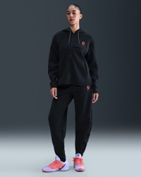 Sabrina Ionescu's versatile, all-gender collection helps keep you confident in your pursuit of excellence. Irresistibly smooth and sleek, this hoodie is made with premium fabric that feels soft and airy, with the perfect amount of stretch for all your moves. Benefits - Nike Dri-FIT technology moves sweat away from your skin for quicker evaporation, helping you stay dry and comfortable. - "Anyone, Anywhere" flag label on right side seam reminds Sabrina and her fans that we are all capable of greatness. Product Details - Glossy printed logos on chest - Hood with drawcord - Hem vents - 93% polyester/7% spandex - Machine wash - Imported - Shown: Black/Purple Pulse/Magic Ember - Style: IH3916-010 SIZE & FIT Female model is wearing size XS and is 5'11"180cm Male model is wearing size M and is 6'0"183cm Loose fit: roomy and relaxed