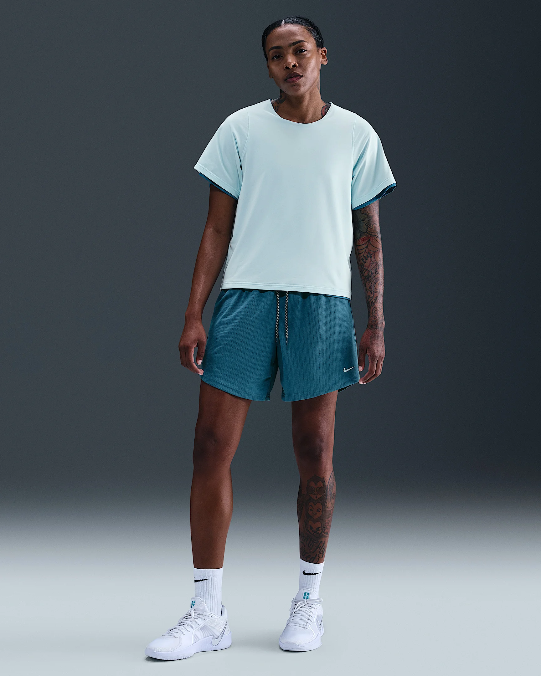 Sabrina Ionescu's versatile, all-gender collection helps keep you confident in your pursuit of excellence. These reversible shorts (made with breathable mesh on one side and knit jacquard on the other) help you stay comfortable with sweat-wicking technology. Benefits - Nike Dri-FIT technology moves sweat away from your skin for quicker evaporation, helping you stay dry and comfortable. - Versatile drawcord can be tied inside or outside. - "Anyone, Anywhere" flag label on right side seam reminds Sabrina and her fans that we are all capable of greatness. Product Details - Glossy printed logos - Side vents - Woven flag label - Pockets on solid side - 100% polyester - Machine wash - Imported - Shown: Rift Blue/Glacier Blue/Blue Force/Glacier Blue - Style: IF3350-415 SIZE & FIT Standard fit: easy and traditional