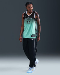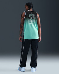 Got dreams to be the next Sabrina Ionescu? The first step is looking the part. This relaxed-fit replica jersey gives you details modeled after what the Liberty wear on the court and lets you rep your favorite player everywhere you go. Benefits - Nike Dri-FIT technology moves sweat away from your skin for quicker evaporation, helping you stay dry and comfortable. - Lightweight knit fabric feels smooth against your skin. Product Details - 100% polyester - Machine wash - Imported - Shown: Mint - Style: FD0806-305 SIZE & FIT Model is wearing size S and is 5′10″178cm Loose fit: roomy and relaxed If you typically wear women's styles, please select your usual size. If you typically wear men's styles, please size up.