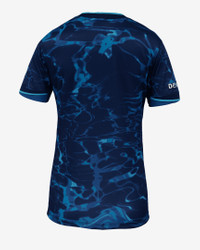 Like the ocean current, the San Diego Wave are a force to be reckoned with. This ocean-inspired uniform celebrates the team's ability to create excitement, cause commotion and influence the game. The all-over print is accented with a two-tone Nike Swoosh and a "Make Waves" hip detail. Product Details - Replica design - Woven crest - Embroidered Swoosh - 100% polyester - Machine wash - Imported - Shown: Blue Jay/Blue Void - Style: P35557SDWF-BJB