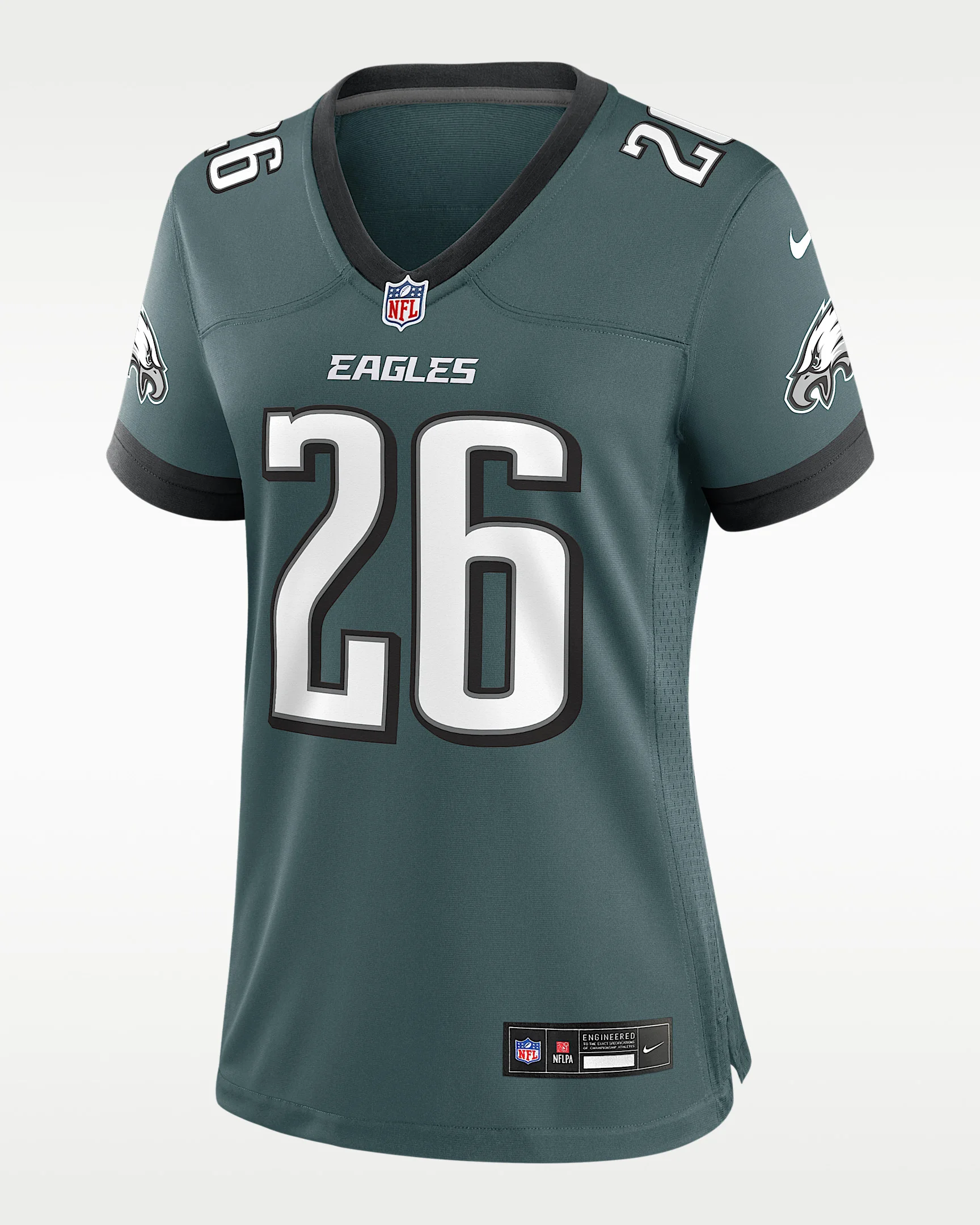 Rep one of your team's top stars with this Philadelphia Eagles Jersey. Proper ventilation and a form fit help provide a dry, comfortable wear with the authentic look of the on-field uniform. Benefits - Screen-printed name, number and team mark offer lightweight durability. - Ventilation over major heat zones helps keep you cool. Product Details - Standard fit for a relaxed, easy feel - NFL shield at V-neck - Tagless neck label - Woven jock tag - 100% polyester - Machine wash - Imported - Shown: Sport Teal - Style: 67NW0ABR86F-XZ7