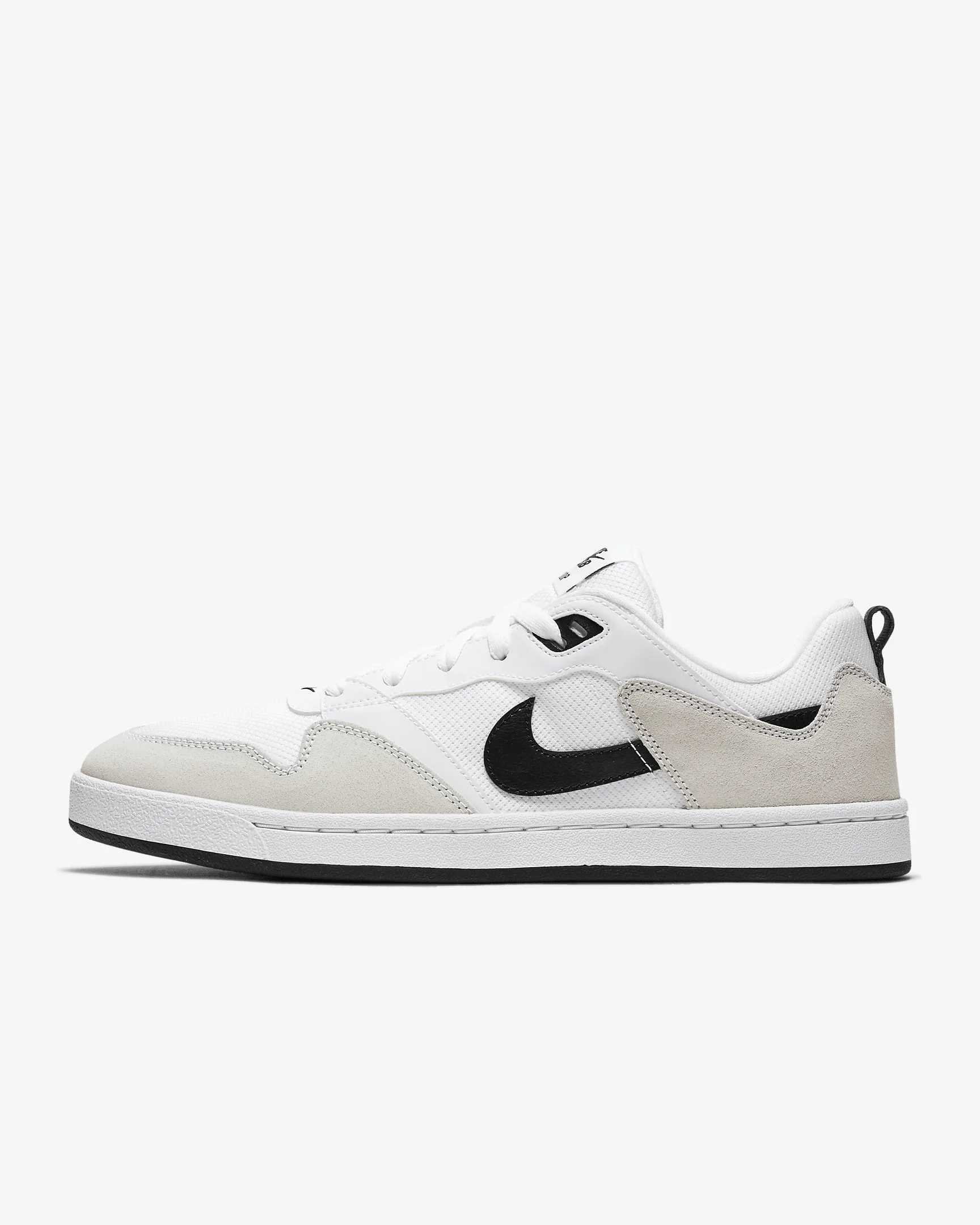 The Nike SB Alleyoop delivers comfort that lasts in a low-top silhouette. Soft suede and plush foam hug and support your foot, long after the sun goes down. Benefits - Suede and textile are durable and breathable. - Foam sockliner cushions every step. - Rubber outsole gives you excellent traction. - Puffy tongue feels plush against the top of your foot. Product Details - Traditional lacing - Full cupsole stitch - Heel pull tab - Shown: White/White/Black - Style: CJ0882-100