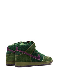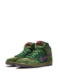 SB Dunk High Premium "Skunks" sneakers With a focus on progressive design and technical construction, Nike is instantly recognisable thanks to the iconic Swoosh logo and Just Do It slogan. Presented in green and purple suede, these Dunk High Premium SB sneakers feature a round toe, a lace-up front fastening, a logo patch at the tongue, a signature Nike swoosh and a flat rubber sole. These styles are supplied by a premium sneaker and street wear marketplace. Stocking only the most sought-after footwear and clothing, they source and curate some of the most hard-to-find items from around the world. Imported Composition Outer: Suede 100% Lining: Polyester 100% Sole: Rubber 100%