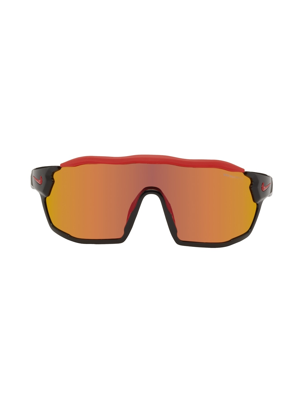 Shield-style acetate-frame sunglasses in black and red. · Mirrored gradient red Max Optics lens · Integrated rubber nose pads · Swoosh hardware at hinges · Hardside case included · Size: 58.16 130 Please note that this item may be shipped only within North America. Supplier color: Black/Red Acetate.