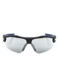 Show X3 biker-style frame sunglasses Highlights - Black - Lightweight - Ergonomic design - Matte effect - Biker-style frame - Half-rim design - Mirrored lenses - Nose pads - Ventilation panels - Signature swoosh logo detail - Sculpted arms - Straight tips - These glasses come with a protective case. Imported Composition PVC 100% SIZE & FIT Measurement Arm Length 5.11 in(13 cm) Bridge Width 0.35 in(0.9 cm) Lens Diameter 2.83 in(7.2 cm) Total Width 5.82 in(14.8 cm)