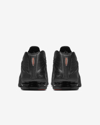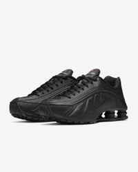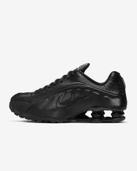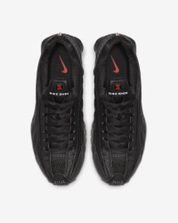 A recrafted version of the 2001 icon, the Nike Shox R4 replicates the original with its synthetic and textile upper, design lines and laser perforations. Nike Shox cushioning distributes weight to maximize comfort and provide a performance-inspired look. Benefits - Originally designed to support the stride of runners, Nike Shox columns provide responsive cushioning. - Upper is a near-exact replica of the original 2001 Nike Shox. - Modified, circular waffle outsole gives traction. - Laser perforations throughout provide ventilation. Product Details - Not intended for use as Personal Protective Equipment (PPE) - Shown: Black/Black/Max Orange/Black - Style: AR3565-004