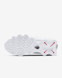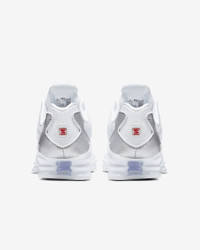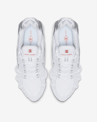 The Nike Shox TL takes mechanical cushioning to the next level. A recrafted version of the 2003 icon, it features breathable mesh in the upper and full-length Nike Shox technology for optimal impact absorption and a bold look on the streets. Benefits - Nike Shox technology combines resilient, flexible columns with moderator plates for outstanding cushioning that compresses and regains its shape. - Design is a near-exact replica of the 2003 Nike Shox TL. - Molded overlays throughout the midfoot provide support and a snug fit. - TPU plate in the heel supplies lateral stability and support. Product Details - Synthetic and textile upper - Rubber outsole - Not intended for use as Personal Protective Equipment (PPE) - Shown: White/Metallic Silver/Max Orange/White - Style: AR3566-100