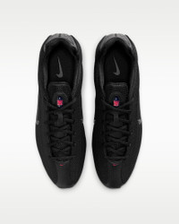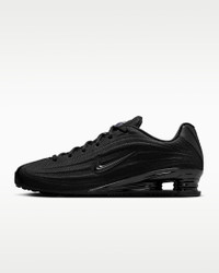 Your favorite retro runner has reached its next evolution. The Shox Z has a slim, low-profile shape and a new take on the iconic column design. Benefits - Textile upper is light and breathable, and synthetic leather accents channel original Shox style. - Nike Shox columns provide resilient cushioning. - Modified, circular Waffle outsole gives you durable traction. Product Details - Shiny finishes - Foam midsole - Rubber outsole - Shown: Black/University Red/Black - Style: HQ7540-003