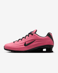 Your favorite retro runner has reached its next evolution. The Shox Z has a slim, low-profile shape and a new take on the iconic column design. Benefits - Textile upper is light and breathable, and synthetic leather accents channel original Shox style. - Nike Shox columns provide resilient cushioning. - Modified, circular Waffle outsole gives you durable traction. Product Details - Shiny finishes - Foam midsole - Rubber outsole - Shown: Pinksicle/Black - Style: HQ7540-601
