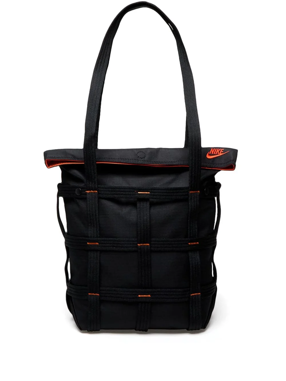 Sportswear Cargo tote bag Highlights - Black - Lattice detail - Fold-over top - Top handles - Orange stitching - Embroidered logo Imported Composition Lining: Polyester 100% Outer: Polyester 100% SIZE & FIT Measurement DEPTH 5.9 in(15 cm) HEIGHT 19.09 in(48.5 cm) WIDTH 15.94 in(40.5 cm)