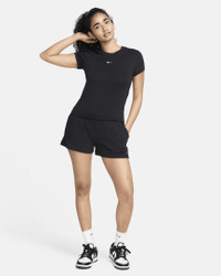Perfect for any day, this slightly cropped, slim-fitting tee is classic and versatile. Our smooth jersey feels stretchy with a slight drape, giving it a comfortable, body-skimming feel. Product Details - 48% modal/46% cotton/6% spandex - Machine wash - Imported - Shown: Black/White - Style: FV5508-010 SIZE & FIT Model is wearing size S and is 5′7″170cm Sm fit: sleek and tailored