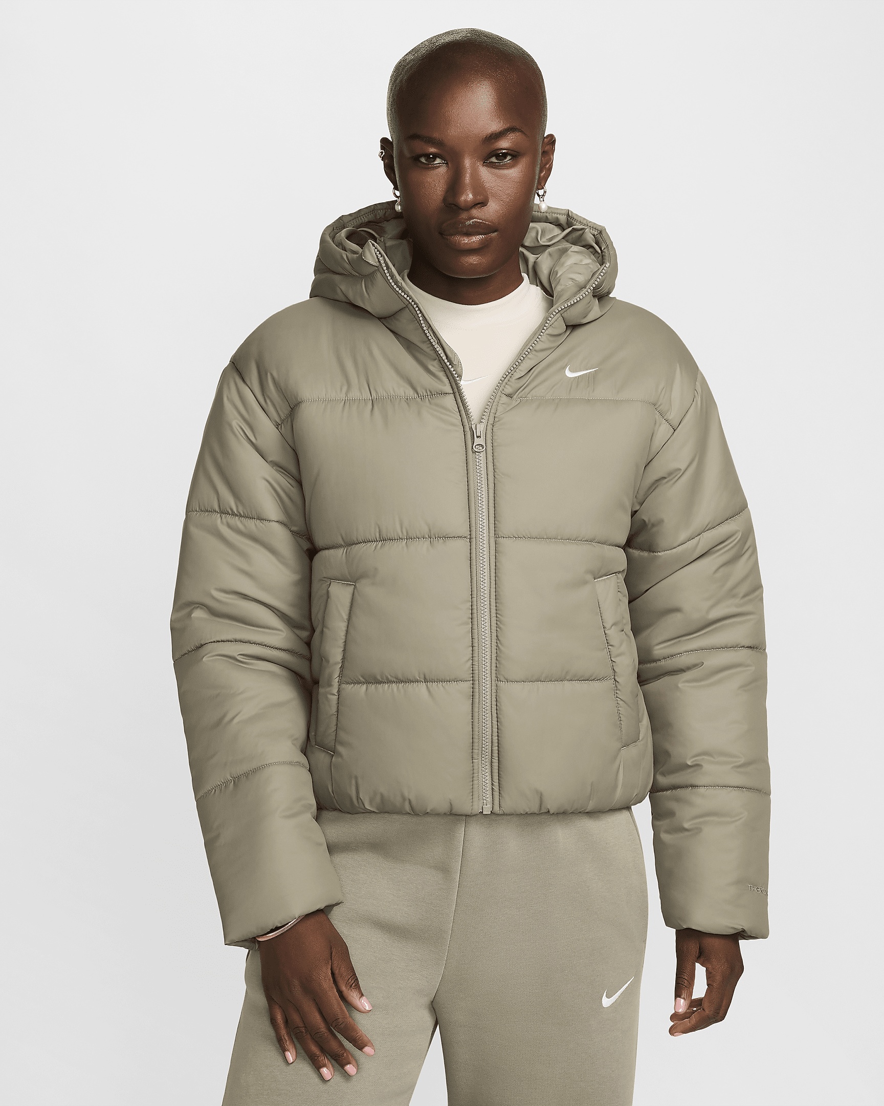 Take on the winter chill in a jacket designed to add some warmth to your life. Loose enough to layer, its synthetic fill adds insulation while Nike Therma-FIT technology helps manage your body’s natural heat to help keep you warm in cold-weather conditions. On top of that, a water-repellent finish helps keep you dry. So zip it up, throw your hands in the pockets and get out there! More Benefits - Style: Hip-length, loose-fit jacket - Materials: Water-repellent fabric - Construction: Synthetic insulation - Storage: Zippered hand pockets - Trim: Zipper and elastic hem - Other Features: Hood with foldable storm bill and bungee toggles Product Details - 100% polyester - Embroidered Swoosh logo - Machine wash - Imported - Shown: Light Army/White - Style: FZ5899-321 SIZE & FIT Model is wearing size S and is 5′8″173cm Loose fit: roomy and relaxed