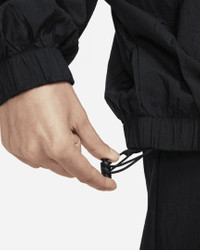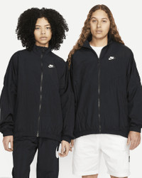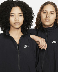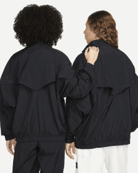 Stay covered without losing a stitch of style in this oversized, carefree jacket. Building on the classic Windrunner, its crinkle woven fabric is lined with mesh for added comfort and easy layering. An iconic chevron shape and Futura logo provide a heritage Nike look. This product is made with 100% recycled polyester and recycled nylon fibers. Product Details - Oversized for a baggy, spacious feel - Body: 100% nylon. Mesh: 100% polyester. - Embroidered Swoosh - Stand-up collar - Machine wash - Imported - Shown: Black/Black/White - Style: DM6185-010 SIZE & FIT Oversized fit: exaggerated and spacious Fits large; we recommend ordering a size down