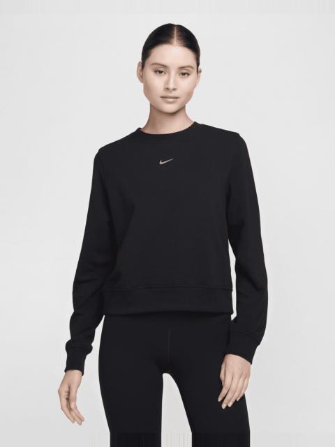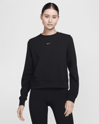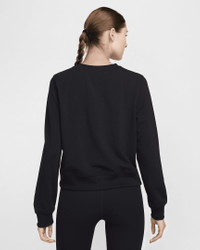 Arm day? Rest day? Get-stuff-done day? Stay comfortable no matter what day it is in this relaxed, sweat-wicking Nike One sweatshirt. Its midweight French terry fabric (with unbrushed loops on the inside) gives structure, breathability and softness—so it's just as ready for the gym as it is for the couch. Benefits - Nike Dri-FIT technology moves sweat away from your skin for quicker evaporation, helping you stay dry and comfortable. - Ribbed cuffs and hem help keep sweatshirt in place while you move. Product Details - Body: 58-59% polyester/36-37% cotton/5% spandex. Rib: 56% polyester/41% cotton/3% spandex. - Material percentages may vary. Check label for actual content. - Machine wash - Imported - Shown: Black/White - Style: FB5125-010 SIZE & FIT Model is wearing size S and is 5′9″175cm Standard fit: easy and traditional