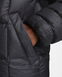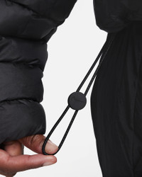 Stay warm on the coldest days by bundling up in this oversized puffer. Nike Therma-FIT technology helps manage your body’s natural heat to help keep you warm in cold-weather conditions. Exaggerated details (like the extra-wide storm flap and the oversized hood) help give this winter staple an updated look, while the PrimaLoft® Thermoplume®-filled baffles work to keep you cozy. And when your hands get cold, just slip them in the pockets—or zip them up to keep small items safe. More Benefits - Style: Warm, hip-length jacket with oversized fit - Materials: Nylon fabric and PrimaLoft® - Construction: Synthetic insulation, iconic square baffles and embossed lining - Storage: Zippered hand pockets - Trim: Snap closures, and bungee toggles at hem and hood - Perks: Oversized hood features storm flap Product Details - Body: 58% polyester/42% nylon. Lining: 100% polyester. Fill: 100% polyester. - Applique Swoosh logo at center back - Embroidered Swoosh logo at hood - Machine wash - Imported - Shown: Black/White - Style: FB8729-010 SIZE & FIT Model is wearing size S and is 5′10″178cm Oversized fit: exaggerated and spacious