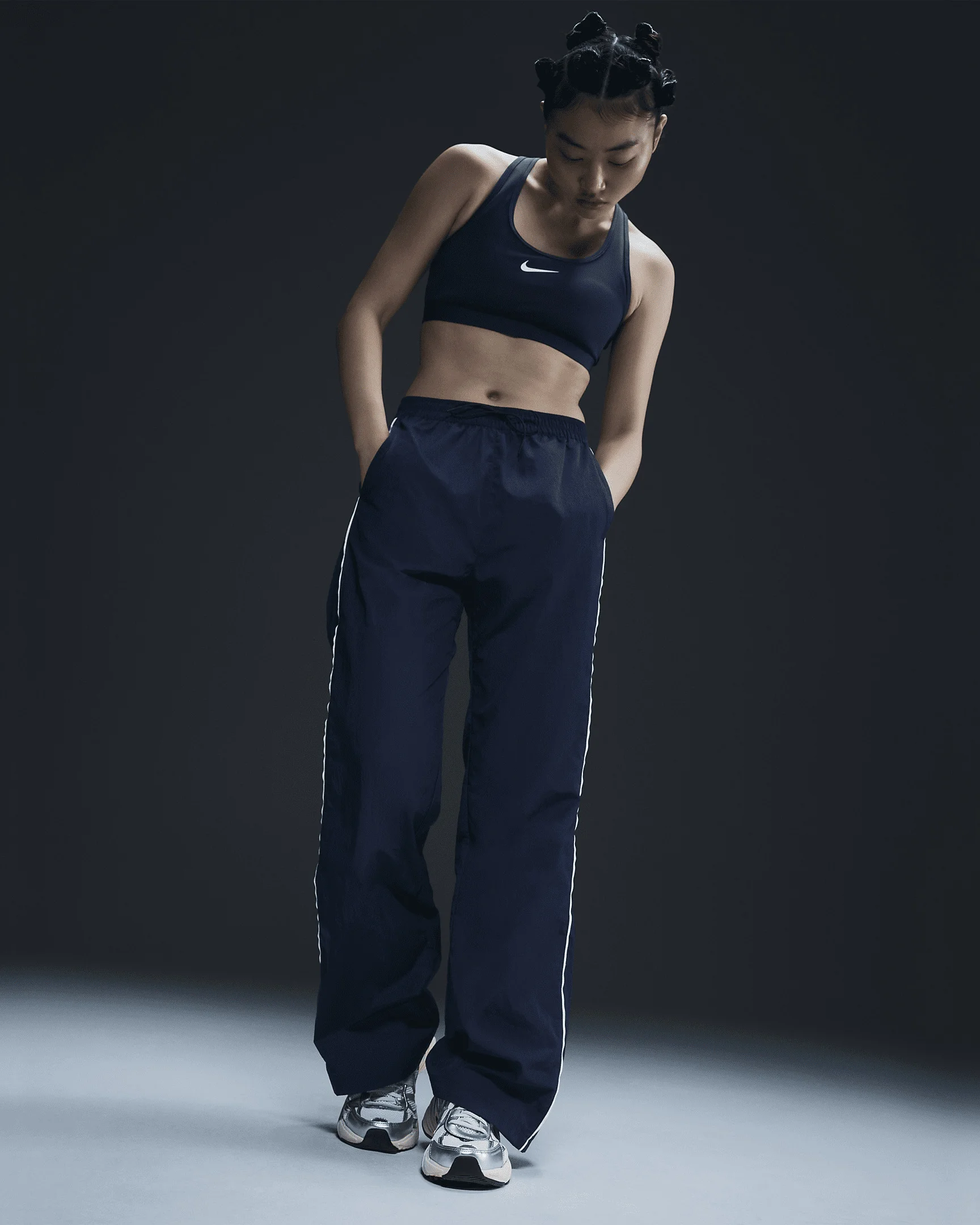 Reaching back to our roots, these easy-fitting pants pull inspiration from the Nike looks of the '70s. A water-repellent finish and UV technology built into the crinkle-woven fabric help keep you good to go come rain or shine. Benefits - Snap pockets provide secure storage. - Elastic waistband with drawcord lets you dial in your perfect fit. - Water-repellent finish helps keep you dry in wet weather. Product Details - 100% nylon - Off-white colorway fully lined with 100% polyester mesh - Embroidered Swoosh logo - This product provides UVA and UVB protection from the sun only in the areas covered by the garment. To protect exposed areas, the use of good quality sunscreen is recommended. - Machine wash - Imported - Shown: Armory Navy/White - Style: FV7655-478 SIZE & FIT Model is wearing size S and is 5′9″175cm Standard fit: easy and traditional 78 length: hits at ankle