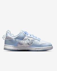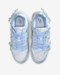 Nike and SUSAN FANG come together to create an elegant and surprising Dunk Low, rooted in Fang's admiration for beauty and the instinctive allure of nature. Synthetic leather mixes with jacquard textiles featuring Fang's original designs. Together, the materials create a stunning backdrop for the ethereal 3D floral embellishments, highlighting the elite craftsmanship and artisanal skill for which SUSAN FANG is known. Benefits - Synthetic leather and textile upper softens and gains vintage character with wear. - Foam midsole offers lightweight cushioning. - Rubber outsole with classic pivot circle adds durable traction and heritage style. Product Details - Shown: Summit White/Wolf Grey/Hydrogen Blue/Blue Tint - Style: HV8575-100