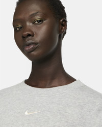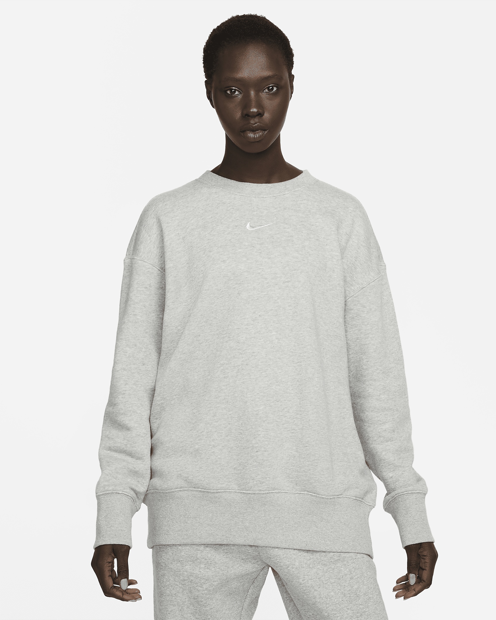 Grounded in style, comfort and versatility, meet our take on luxury loungewear. This classic sweatshirt helps you stay cozy all day long, thanks to its midweight fleece that feels soft yet structured. Plus, the taller ribbing and oversized fit give you a trend-right look. Benefits - Our midweight brushed fleece feels extra soft on the inside and smooth on the outside, helping you stay cozy while keeping its structured shape. - Dropped shoulder seams and oversized fit provide a casual, relaxed look. Product Details - Elongated ribbing - Embroidered Swoosh logo - Body: 80% cotton/20% polyester. Rib: 97% cotton/3% spandex. - Machine wash - Imported - Shown: Dark Grey Heather/Sail - Style: DQ5733-063 SIZE & FIT Model is wearing size S and is 5′9″175cm Oversized fit: exaggerated and spacious Fits large; we recommend ordering a size down