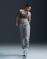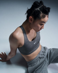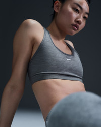 Find the perfect balance of coverage and comfort in this non-padded Swoosh sports bra. Light support gives you a gentle hold with plenty of freedom that's great for low-impact workouts or all-day comfort. Sweat-wicking, adaptive material quickly recovers its shape so you can stay comfortable. And when it's time to change, a minimal silhouette with widened armholes makes getting in and out of your bra a breeze. Product Details - Body: 82% polyester/18% spandex. Lining: 82% polyester/18% spandex. - Machine wash - Imported - Shown: Smoke Grey/Pure/White - Style: DX6817-085 SIZE & FIT Model is wearing size S Model height: 5′9″175cm Model bust: 32″80cm Tight fit: snug and form-fitting Light support: feels ke a soft hug with plenty of freedom