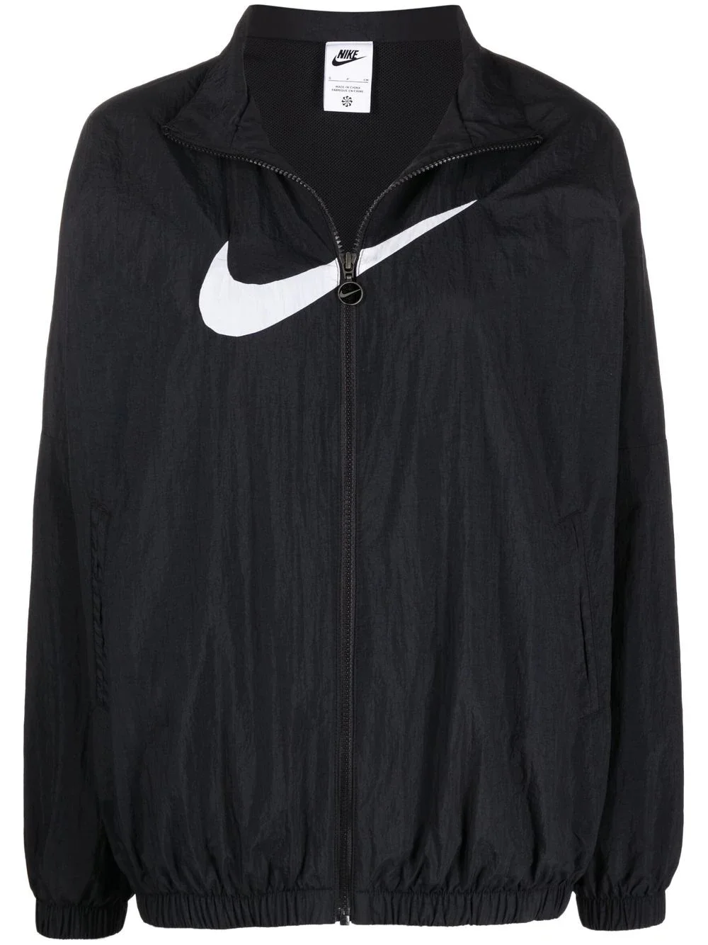 Swoosh logo high-neck jacket Presented in a versatile black hue, this jacket from Nike allows the contrasting Swoosh logo to take the focus. Seen at the front, the branding appears split into two sections connected through a front zip fastening. Imported Composition Nylon 100%, Polyester 100% SIZE & FIT Model measurements Height 5 ft 10 in(1.79 m) Bust/Chest 31.49 in(80 cm) Hips 34.25 in(87 cm) Waist 22.83 in(58 cm) FittingInformation This piece fits true to size. We recommend you get your regular size Cut for a loose fit Made with a mid-weight non-stretch fabric Washing instructions Machine Wash