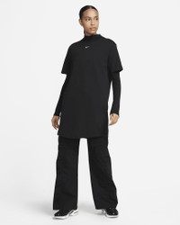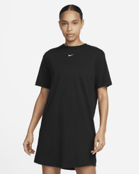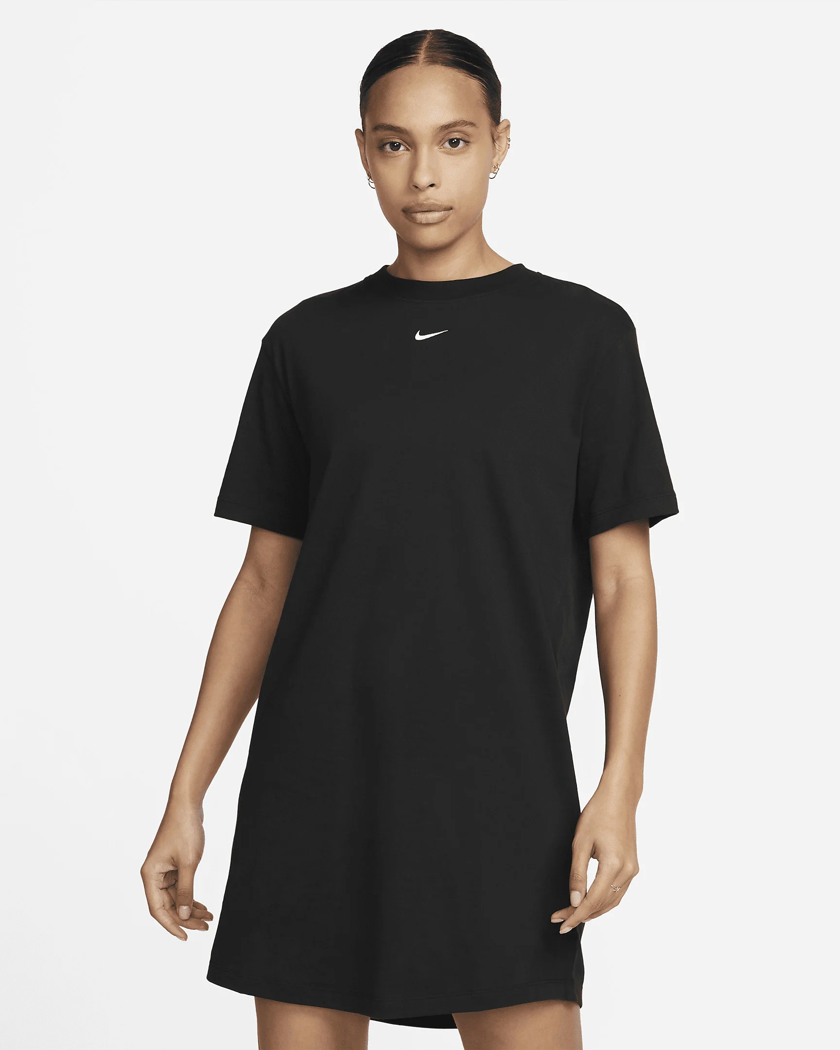 As comfy and easy to throw on as your favorite tee, this dress is ready for whatever you are. A curved hem and a flowy, oversized fit add a chic twist to a closet staple. Benefits - Dropped shoulders and oversized fit provide comfortable, confident feel. - Nothing says classic T-shirt like 100% soft cotton. Product Details - 100% cotton - Ribbed neckline - Embroidered Swoosh logo - Machine wash - Imported - Shown: Black/White - Style: DV7882-010 SIZE & FIT Model is wearing size S and is 5′9″175cm Oversized fit: exaggerated and spacious