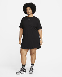 As comfy and easy to throw on as your favorite tee, this dress is ready for whatever you are. A curved hem and a flowy, oversized fit add a chic twist to a closet staple. Benefits - Dropped shoulders and oversized fit provide comfortable, confident feel. - Nothing says classic T-shirt like 100% soft cotton. Product Details - 100% cotton - Ribbed neckline - Embroidered Swoosh logo - Machine wash - Imported - Shown: Black/White - Style: FB3204-010 SIZE & FIT Model is wearing size 1X and is 5′9″175cm Oversized fit: exaggerated and spacious