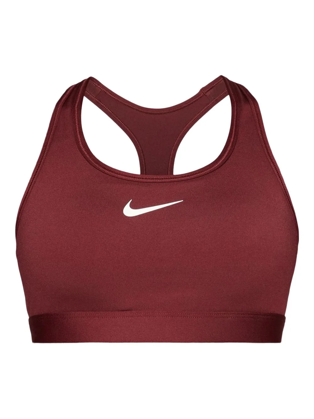 Swoosh Medium Support sports bra Highlights Imported Composition Polyester 72%, Elastane 28% SIZE & FIT FittingInformation Designed for medium-impact sports, this sports bra offers a tight and supportive fit The non-removable padding offers shape and support at the chest Made from a midweight stretch fabric, this piece offers elasticity and flexibility when worn