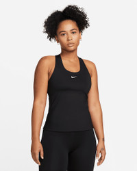 When you want it all, this tank is the pick. The iconic Swoosh bra is built in and smooth, stretchy fabric snuggly holds you, so you're set with everything you need to go from the office to the gym and back again. With sewn-in padding and a racerback silhouette, you can feel confident that nothing is shifting as you go about your day. Product Details - Body: 82% polyester/18% spandex. Bra mesh: 81% polyester/19% spandex. Elastic: 65% nylon/35% spandex. Bra mesh lining: 81% polyester/19% spandex. Pad top fabric: 100% polyester. Pad: 100% polyurethane. Pad back fabric: 100% polyester. - Machine wash - Imported - Shown: Black/Black/White - Style: DV9897-010 SIZE & FIT Model is wearing size S Model height: 5′7″170cm Model bust: 34″86cm Tight fit: snug and form-fitting Medium support: feels ke a snug hold to keep everything in place Fits small; we recommend ordering a size up