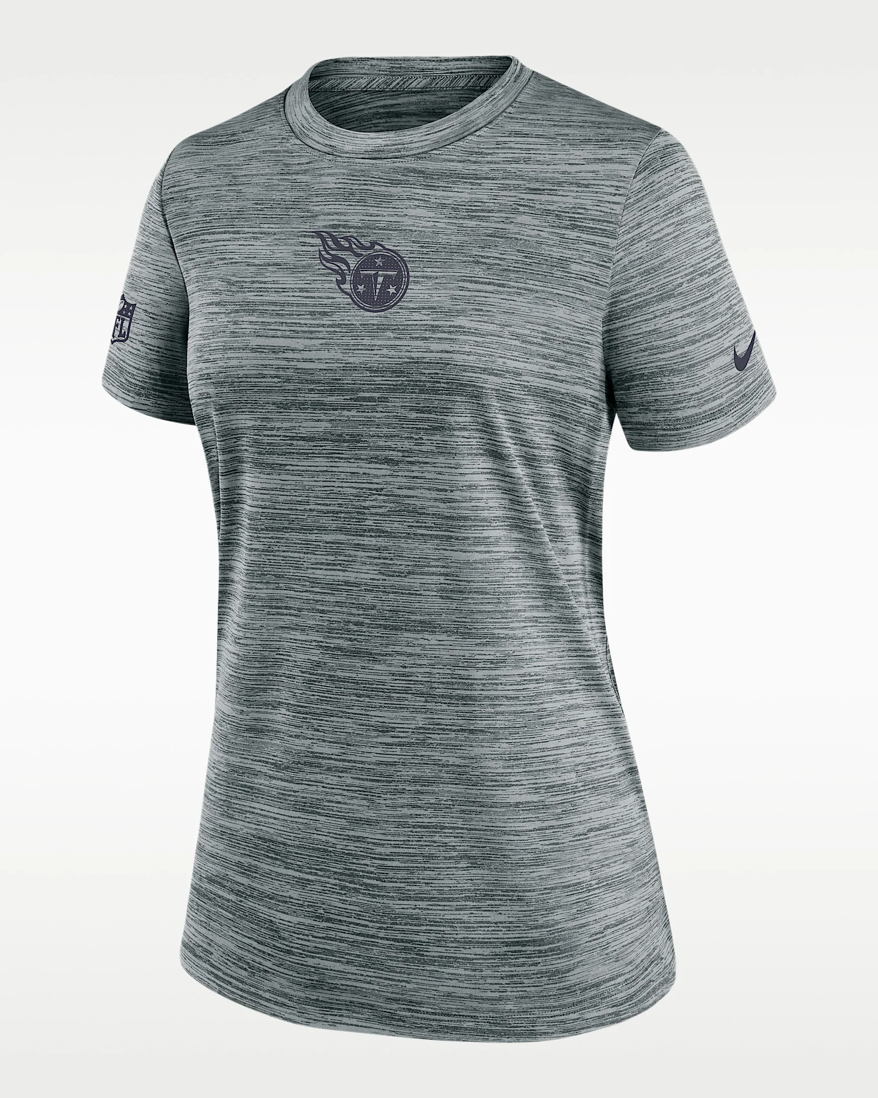 The Tennessee Titans Sideline Team Issue Velocity combines lightweight polyester with sweat-wicking technology to help keep you cool and dry. Its cross-dyed pattern helps accentuate the team graphics on the front. Benefits - Nike Dri-FIT technology moves sweat away from your skin for quicker evaporation, helping you stay dry and comfortable. - Jersey fabric has a soft, lightweight feel. Product Details - 100% polyester - Machine wash - Imported - Shown: Grey Heather - Style: 03EY06G8F-P88