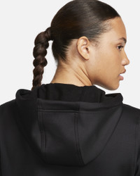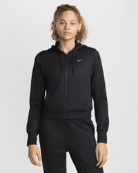 Feel ready for it all—chilly morning walks, stopping at the cafe or snuggling up on the couch. This surprisingly lightweight, stretchy hoodie gives you the best of both worlds: It looks sleek and feels cozy, thanks to supersmooth fabric on the outside and unbelievably soft brushed fleece on the inside. A relaxed fit, hand pockets and heat-regulating tech top it off, making it the all-around pick whether you're staying in or going out. Benefits - Nike Therma-FIT technology helps manage your body’s natural heat to help keep you warm in cold-weather conditions. - Thumbholes let you extend your coverage and help hold the sleeves in place while you move. - Pockets provide quick storage for keys, phone and cold hands. - Full-length zipper lets you control airflow and makes for easy changing. Product Details - Body: 91% polyester/9% spandex. Pocket bags: 75% polyester/13% cotton/12% rayon. - Hood with drawcord - Machine wash - Imported - Shown: Black/White - Style: FB5216-010 SIZE & FIT Model is wearing size S and is 5′10″178cm Standard fit: easy and traditional