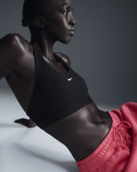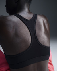 Find the perfect balance of coverage and comfort in this non-padded Swoosh sports bra. Light support gives you a gentle hold with plenty of freedom that's great for low-impact workouts or all-day comfort. Sweat-wicking, adaptive material quickly recovers its shape so you can stay comfortable. And when it's time to change, a minimal silhouette with widened armholes makes getting in and out of your bra a breeze. Product Details - Body: 82% polyester/18% spandex. Lining: 82% polyester/18% spandex. - Machine wash - Imported - Shown: Black/White - Style: DX6817-010 SIZE & FIT Tight fit: snug and form-fitting Light support: feels ke a soft hug with plenty of freedom