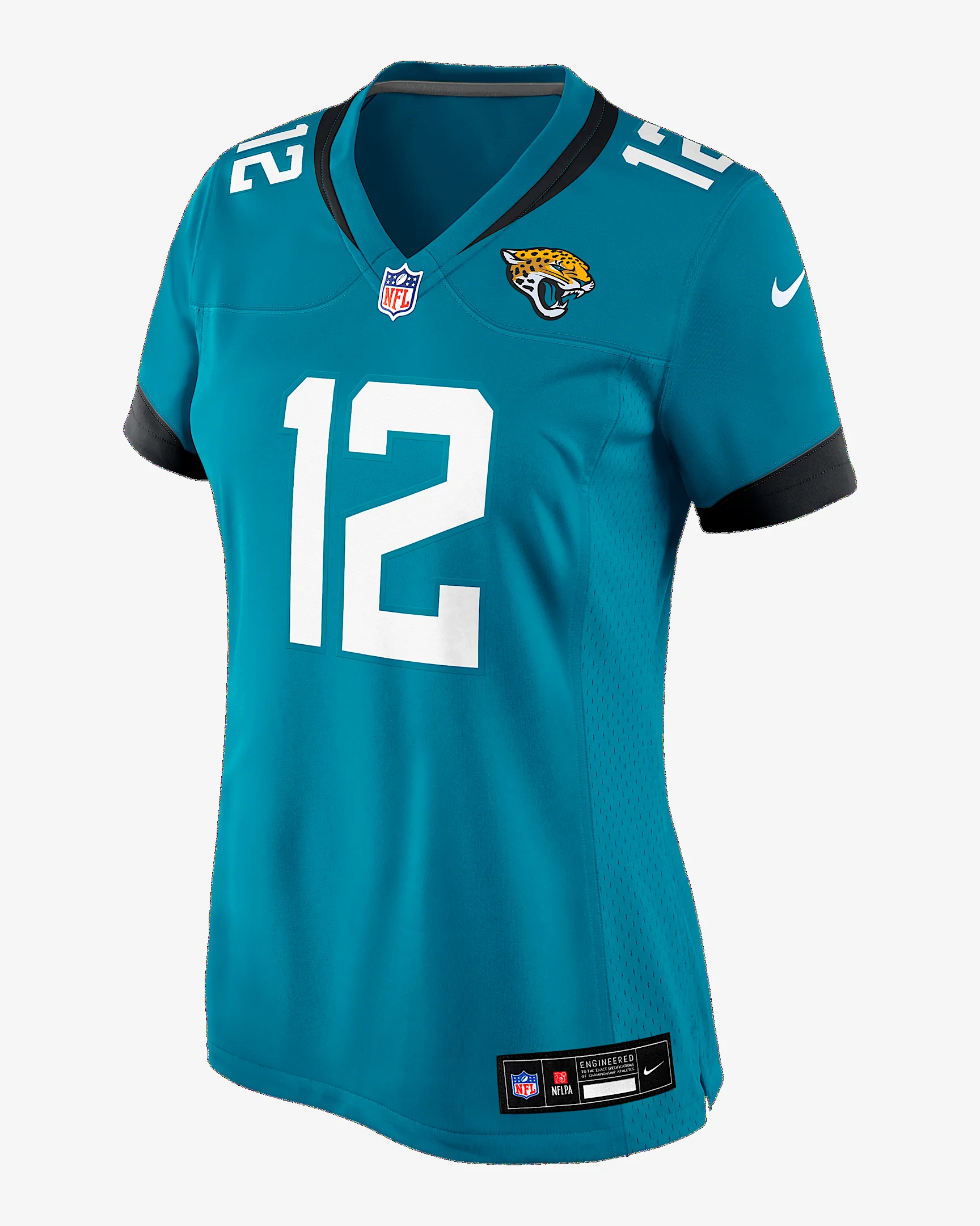 Rep one of your team's new stars with this Travis Hunter Jersey. Proper ventilation and a form fit help provide a dry, comfortable wear with the authentic look of the on-field uniform for the Jacksonville Jaguars. Benefits - Screen-printed name, number and team mark offer lightweight durability. - Ventilation over major heat zones helps keep you cool. Product Details - Standard fit for a relaxed, easy feel - NFL shield at V-neck - Tagless neck label - Woven jock tag - 100% polyester - Machine wash - Imported - Shown: Teal - Style: 67NWJJGA9NF-3EV