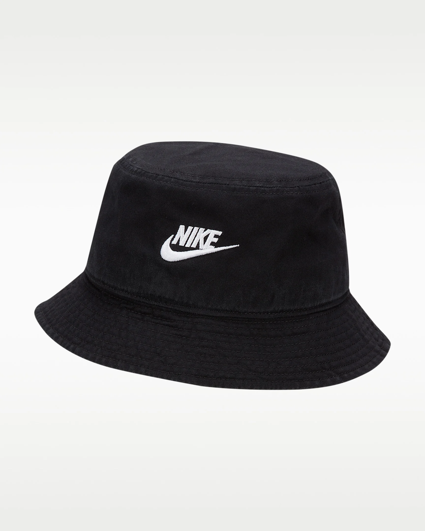 Welcome the Nike Apex Bucket into your lineup. The mid-depth design is made with soft cotton and features an embroidered Futura logo for a clean Nike finish. The wash treatment softens the feel and gives it a vintage look that keeps aging to perfection the more you wear it. Benefits - Washed cotton twill fabric has a soft feel with a vintage finish. - Mid-depth bucket design gives you 360 degrees of coverage. Product Details - Embroidered Futura logo - 100% cotton - Hand wash - Imported - Shown: Black/White - Style: FB5381-010