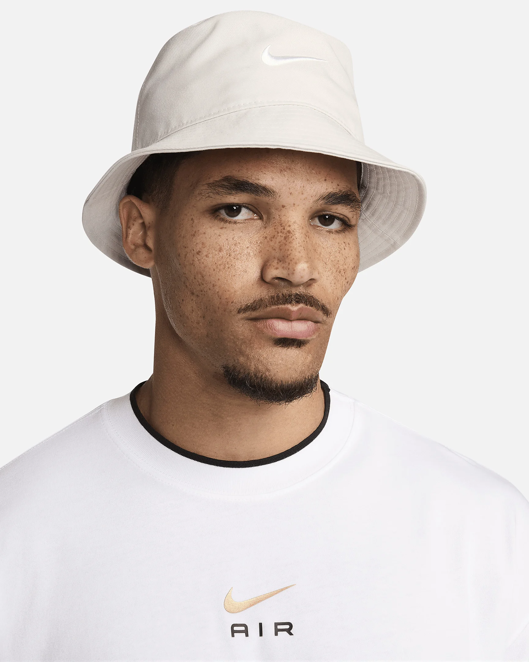 Welcome the Nike Apex Bucket into your lineup. It's the hat you never knew you needed–until now. The mid-depth design is made with soft woven twill and features an embroidered, color contrast Swoosh logo on the front panel for a clean, Nike finish. A wraparound brim gives you 360 degrees of coverage, so you can keep your look fresh, rain or shine. Benefits - Soft woven twill fabric feels smooth and soft on your skin. - Mid-depth bucket design gives you 360 degrees of coverage. Product Details - 100% polyester - Hand wash - Imported - Shown: Light Orewood Brown/Sail - Style: FB5382-104