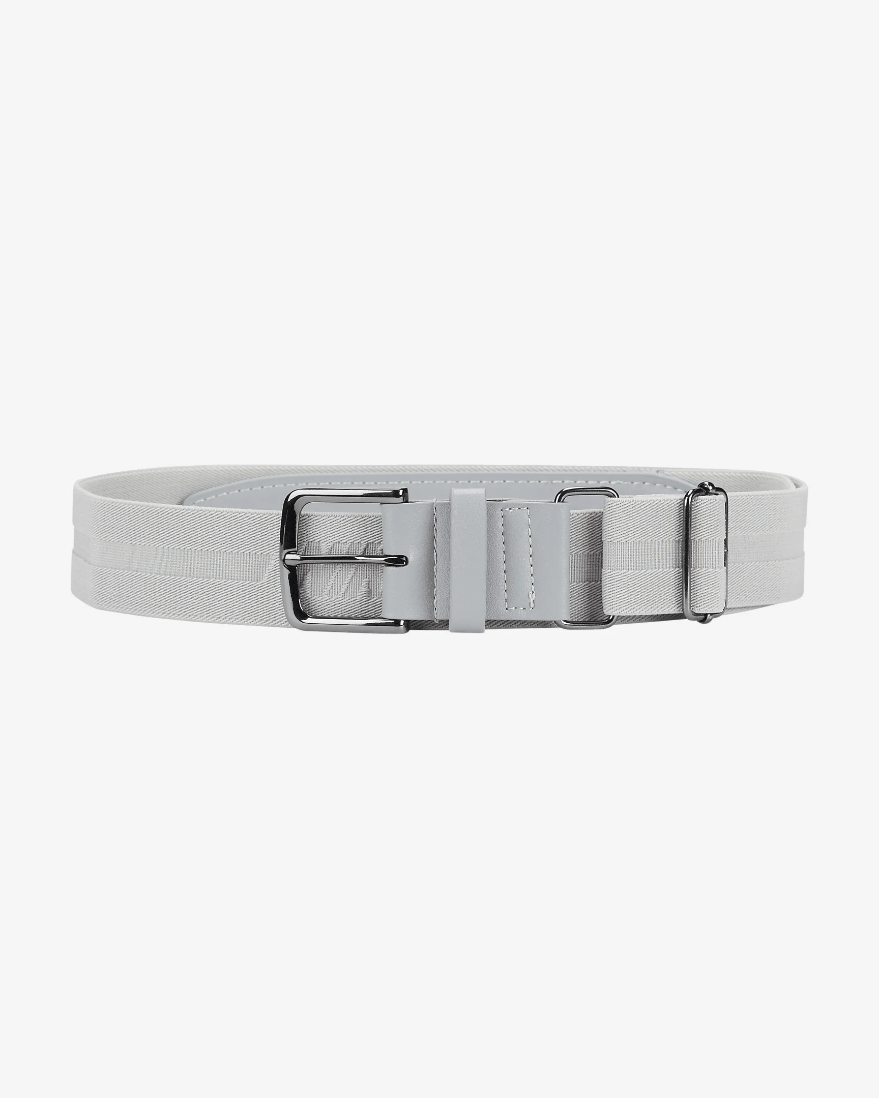 Designed for the diamond, this baseball belt is made of heavy, durable elastic and synthetic leather for a stretchy, customizable fit. Product Details - Fits waists 28" to 43" - 34% elastic/31% polyester/22% zinc alloy/13% polyurethane - Imported - Shown: Wolf Grey - Style: N1000732-015